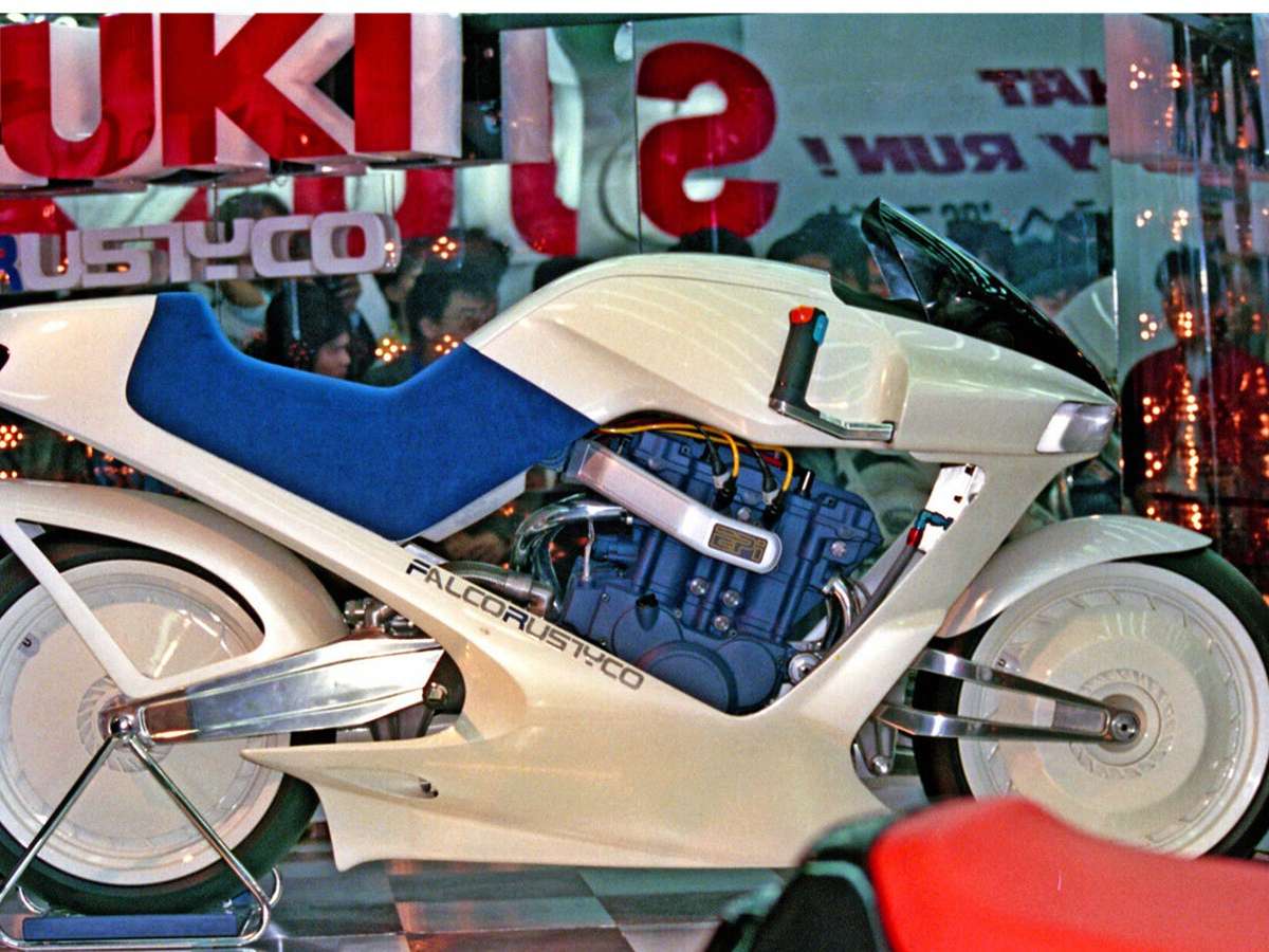 Corria o ano de 1985 quando a Suzuki apareceu no Tokyo Motor Show com uma criatura saída de um sonho techno. Chamava-se Falcorustyco e era tão estranha quanto o seu nome: uma superbike sem corrente, sem garfo, sem amortecedores visíveis, sem nada que lembrasse uma moto tradicional. E, por isso mesmo, inesquecível.