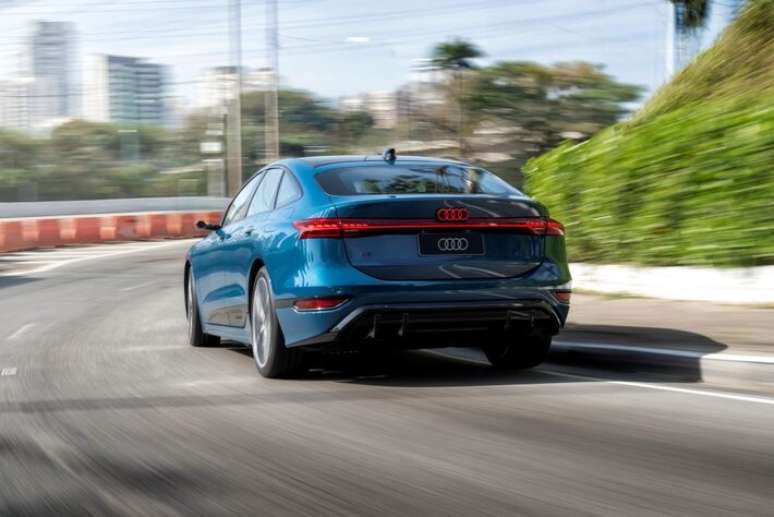 Considerado o carro com o melhor coeficiente aerodinâmico da história da Audi, com 0,21 Cx, o modelo é também o único da marca disponível com tração traseira no Brasil. Isso, graças ao motor elétrico de 367 cv e 57,6 kgfm de torque posicionado no eixo de trás.