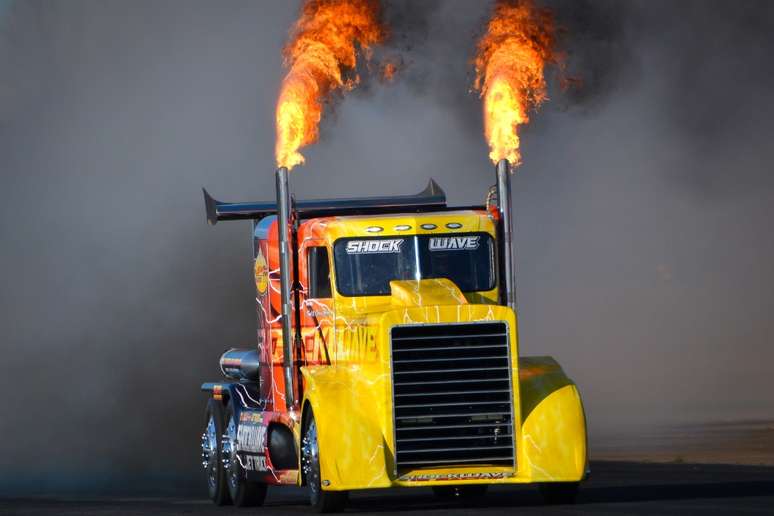 PUBLICIDADE Capa Mobilidade Carros Guia do Carro Mundo do Automóvel para PCD Revista Carro Vídeos Caminhão mais rápido que trem-bala chega a 605 km/h Caminhão é equipado com três motores de jatos, com capacidade de produzir 36 mil cavalos de potência Compartilhar Alimentado por três motores de jatos que geram 36 mil cavalos de potência, o Schockwave é o caminhão mais rápido do mundo Foto: Reprodução Alimentado por três motores de jatos que geram 36 mil cavalos de potência, o Schockwave é o caminhão mais rápido do mundo Foto: Reprodução Pesando quatro toneladas, o caminhão atingiu o recorde de velocidade de 605 km/h Foto: Reprodução De acordo com o Daily Mail, o Shockwave é mais rápido que o trem-bala japonês Foto: Reprodução Shockwave é capaz de percorrer 400 metros em apenas 6s5 Foto: Reprodução Caminhão mais rápido que trem-bala chega a 605 km/h Foto: Reprodução O caminhão é equipado com três motores de jatos da marinha dos Estados Unidos Foto: Reprodução Cada um dos motores do caminhão gera 12 mil cavalos de potência Foto: Reprodução O veículo possui um tanque que comporta 190 litros de combustível e queima 180 litros por desempenho Foto: Reprodução O Shockwave foi construído em 1984 Foto: Reprodução Caminhão se apresenta nos EUA e Canadá para comemorar o 30º aniversário Foto: Reprodução Shockwave é o caminhão mais rápido do mundo Foto: Reprodução Compartilhar Publicidade Compartilhar TAGS Carros Mobilidade Publicidade