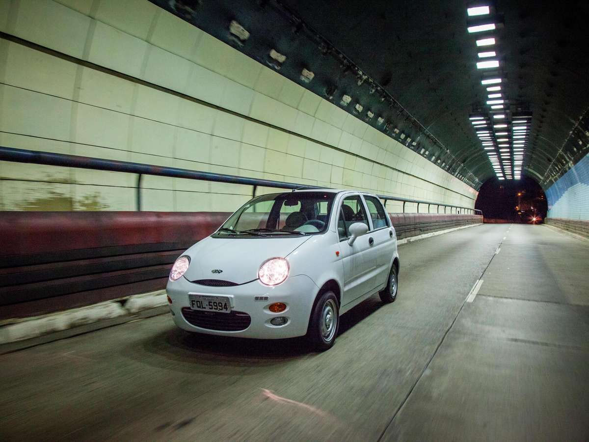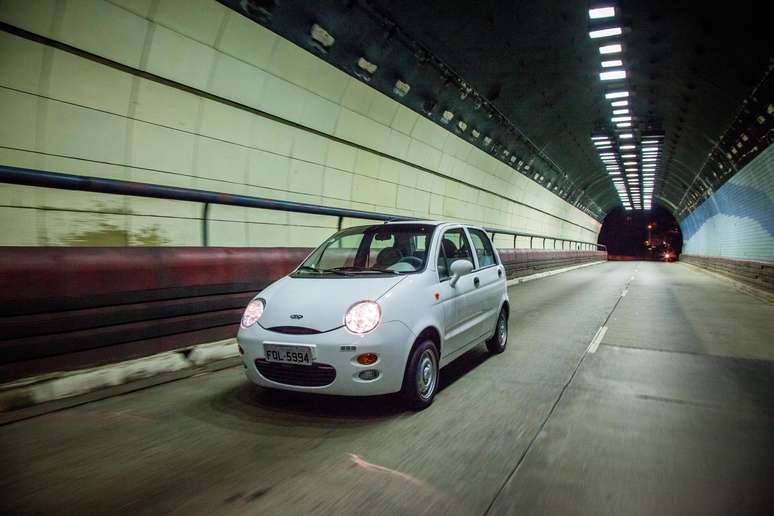O pequeno chinês, de 1,49 metro de largura e 3,55 metros de comprimento, ainda vem com ar-condicionado, travas e vidros elétricos, rádio com MP3/USB, direção hidráulica, painel digital, airbag duplo e freios ABS com EBD. O tanque de combustível é de apenas 35 litros.