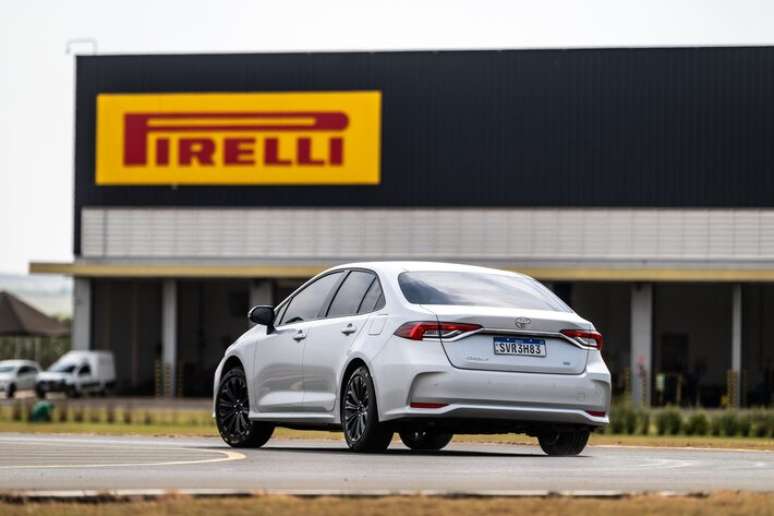 Ao volante do Toyota Corolla XEI usado como bancada de testes, começamos as passagens com alguns jogos de pneus para sentirmos a diferença entre um e outro. Com o primeiro, o sedã se mostrava mais equilibrado, embora um tanto barulhento em curvas para um dos lados, ruído que aumentava de acordo com a velocidade das passagens.