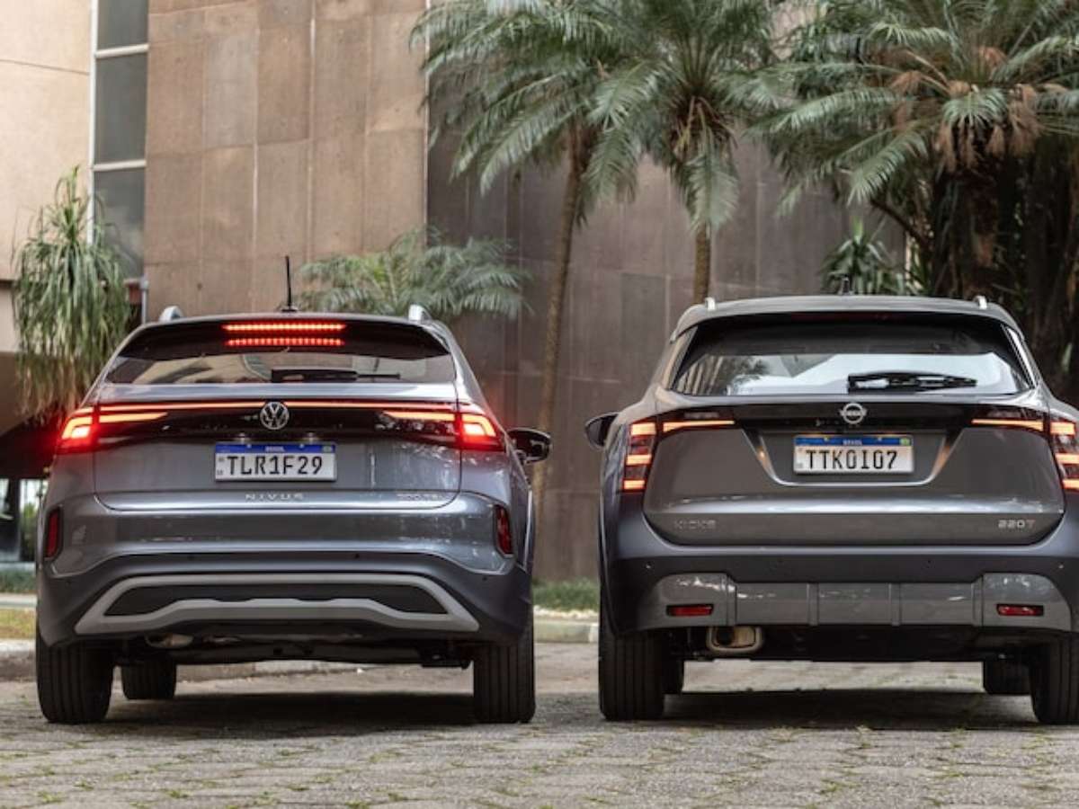 Porém, a diferença é ainda maior para o Nivus, embora ambos sejam 1.0 turboflex. O VW tem 128 cv de potência máxima e menos torque que o rival com etanol (20,4 mkgf). Para completar, usa câmbio automático convencional de seis marchas - o Novo Kicks é automatizado de dupla embreagem. Mas o VW é ajudado pelo menor peso (1.238 kg) e faz 0-100 km/h em 10 s.