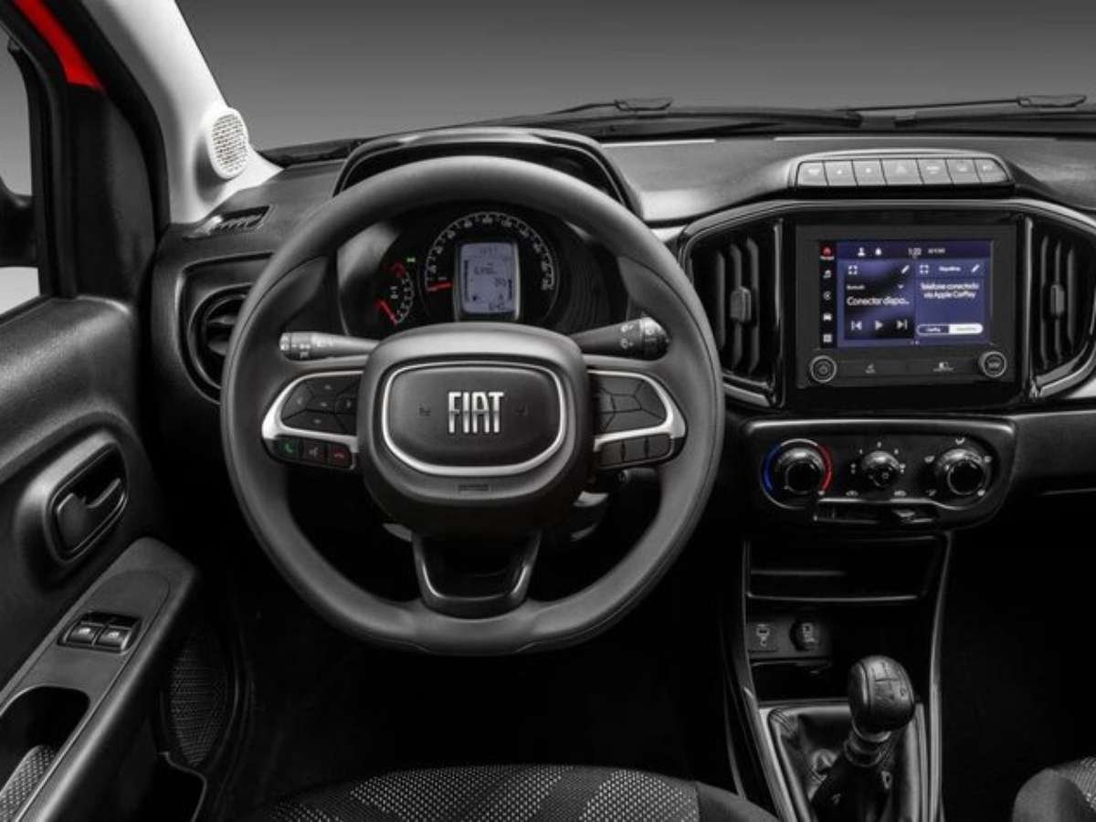 A principal atualização está no interior: o Mobi 2026 passa a contar com painel e quadro de instrumentos da Fiat Strada. Esse novo conjunto moderniza a cabine, oferece mais porta-objetos e aproxima o estilo interno ao de outros modelos da marca. O volante é o mesmo utilizado em carros como Fastback e Toro. Essa mudança foi possível graças à semelhança estrutural entre Mobi e Strada, que compartilham até as portas dianteiras.