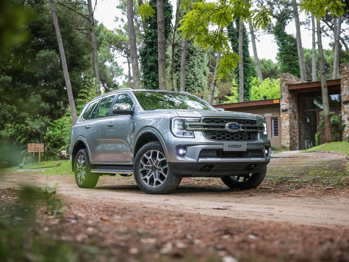 O Everest é um SUV de porte grande, com arquitetura de chassi sobre longarinas, tal como a Ranger. Na Argentina, o SUV chega em versão única, a topo de linha Titanium, com direito a teto panorâmico, porta-malas com abertura elétrica, rodas de 20", faróis de LED, painel digital de 8" e multimídia com tela de 12".