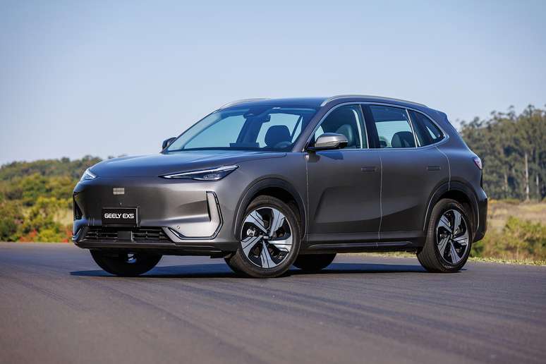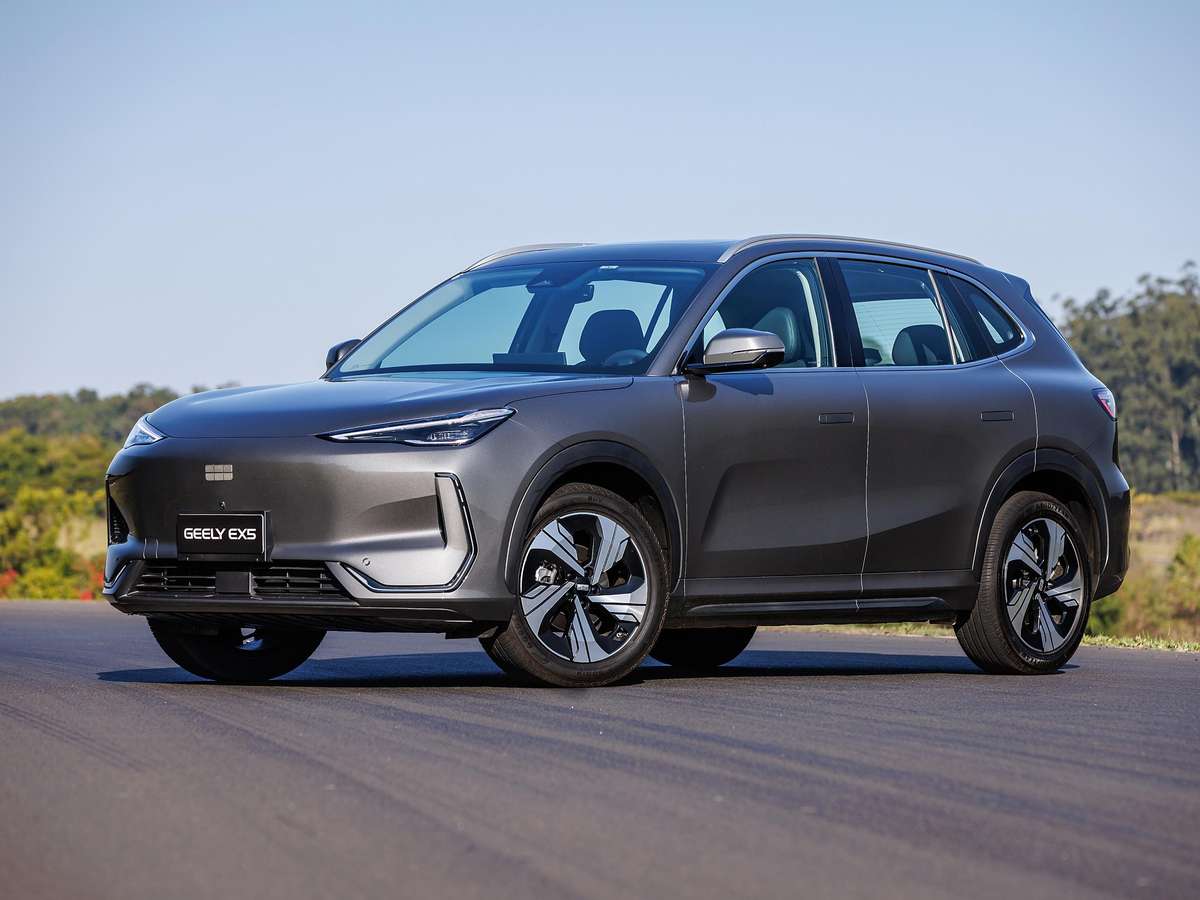 A marca chinesa Geely estreou oficialmente no Brasil. São duas versões do SUV elétrico Geely EX5 com o mesmo powertrain e a mesma bateria. O EX Pro custa R$ 205.800; o EX5 Max sai por R$ 225.800. O Geely EX5 de entrada já vem com 6 airbags e rodas de 18 polegadas. O topo de linha tem 13 itens de segurança ADAS e rodas de 19 polegadas. O alcance pelo PBEV surpreende: 413 km com a bateria de 60 kWh.