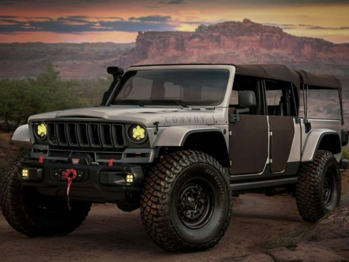 Possivelmente, se trata da terceira geração do Jeep Compass, que deve ser produzida em Goiana (PE) a partir de 2028. Por fim, a Jeep traz também o conceito Convoy, inspirado em veículos militares, e que transforma o Jeep Gladiator em uma picape única e com visual retrô.