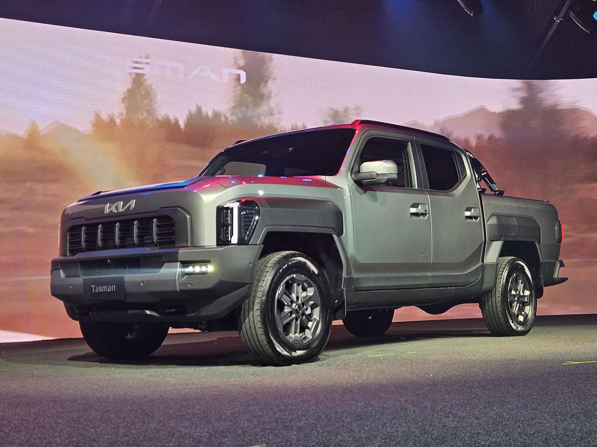 Com 1.173 litros de capacidade na caçamba e 5,41 m de comprimento, a Kia Tasman passa atualmente por testes de homologação no Brasil. O design é bastante exótico, num segmento conservador. Gustavo Gandini, diretor comercial, disse estar otimista com o potencial de vendas da Tasman. A configuração escolhida para o Brasil deve ser a mesma da Austrália: motor 2.2 a diesel de 210 cv de potência e 441 Nm de torque, com câmbio automático de 8 marchas.