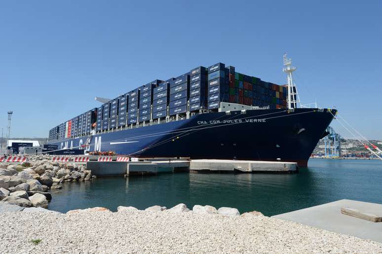 O navio Jules Verne, maior cargueiro de contêineres do mundo, foi inaugurado nesta terça-feira na cidade de Marselha, Sul da França