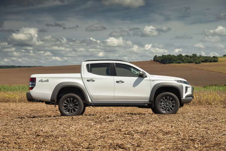 O Mitsubishi L200 Triton Sport Outdoor GLS 2025 tem visual que remete à sua primeira versão, apresentada em 2007, com detalhes externos em acabamento grafite fosco.