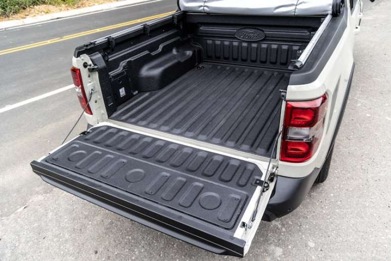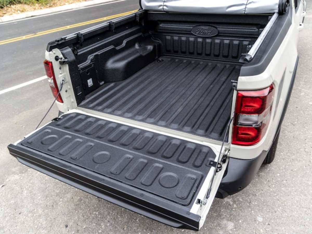 A caçamba vem com uma camada de proteção e capota marítima de série. O compartimento leva 943 litros de volume e a capacidade de carga total (incluindo pessoas a bordo e tudo mais) é de 618 kg. A Tremor, por sua vez, leva 550 kg. Se levarmos em consideração a realidade do mercado brasileiro, uma Fiat Strada Ultra "aguenta" 650 kg e uma Rampage seus 750 kg, porém, o lance da Maverick não é trabalho duro, sua vocação é de ser um veículo premium para lazer, um modelo capaz de levar volumes maiores no compartimento de carga do que um SUV poderia.