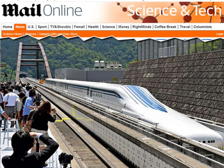 O novo trem-bala japonês fez seu primeiro teste bem sucedido e atingiu a velocidade de 311 km/h, de acordo com informações do jornal Daily Mail publicadas nesta quarta-feira. Esse tipo de trem usa uma técnica magnética de levitação ao invés de trilhos. Com o trem, o trajeto de Tóquio para Nagoya, que atualmente é de 1h30, passará a durar 40 minutos.