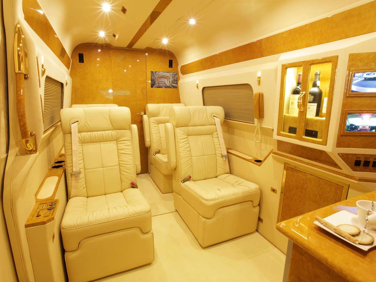 Uma Mercedes-Benz B6 Sprinter ganhou banheiro com chão de mármore e acessórios revestidos em ouro tudo isto por algo entre US$ 450 mil e US$ 500 mil (cerca de R$ 1,1 milhão), dependendo dos opcionais escolhidos
