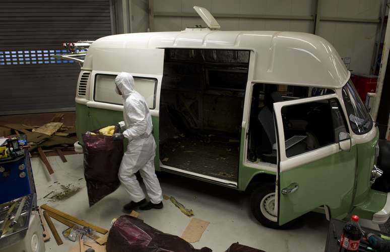 Volkswagen Kombi é restaurada em oficina de Hanover, na Alemanha