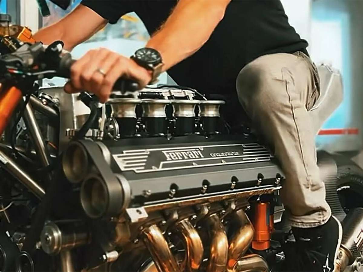 Criaram uma motocicleta de 400 cv em casa usando o motor de uma Ferrari: o som é melhor que o de uma MotoGP
