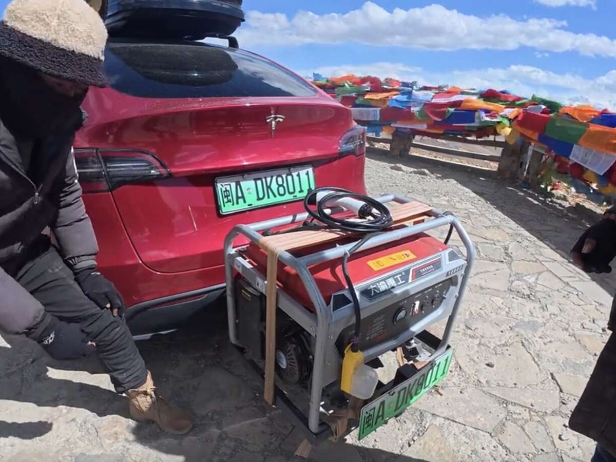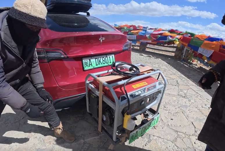 Dono de um Tesla Model Y propôs chegar até o Everest com seu carro elétrico e teve uma grande ideia chamada gasolina