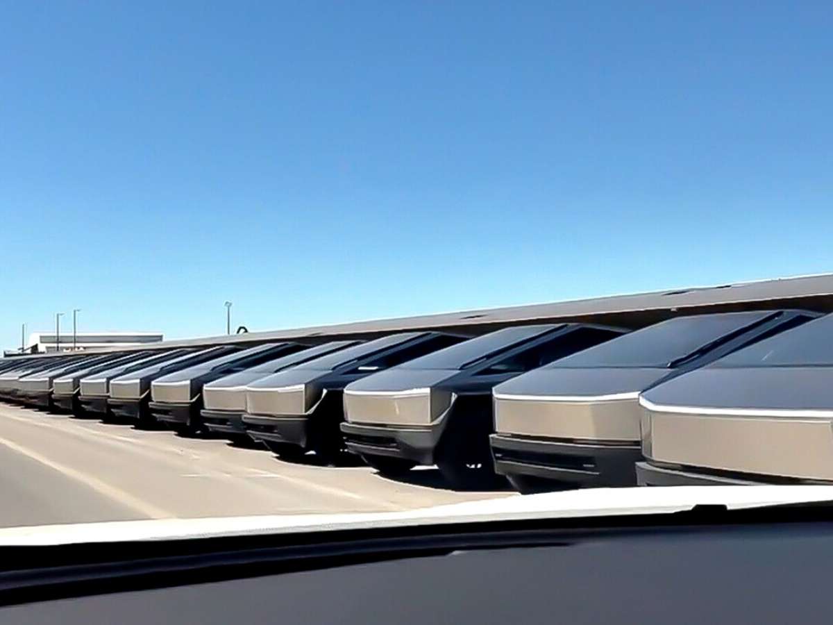Um vídeo que circula na plataforma de mídia social de Musk, X, mostra um grande número de Cybertrucks estacionadas em frente às instalações da SpaceX no sul do Texas.