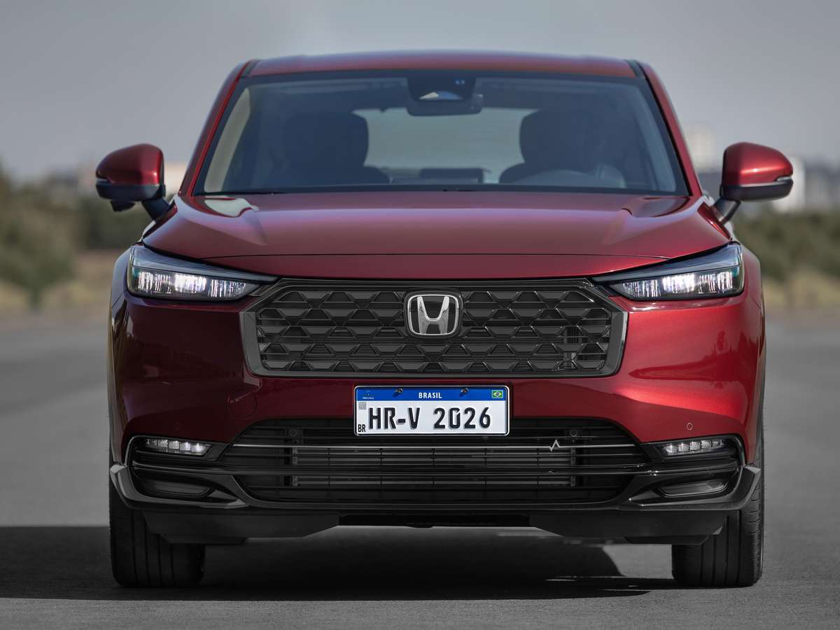 Entre as novidades visuais da linha 2026, o HR-V Advance ganhou um novo para-choque dianteiro. O detalhe traz um traço em formato de batimento cardíaco conectando os faróis auxiliares. Além disso, a grade frontal adota padrão trapezoidal em preto brilhante, reforçando a identidade da versão com motor turbo. Na traseira, o desenho ficou mais anguloso e esportivo.