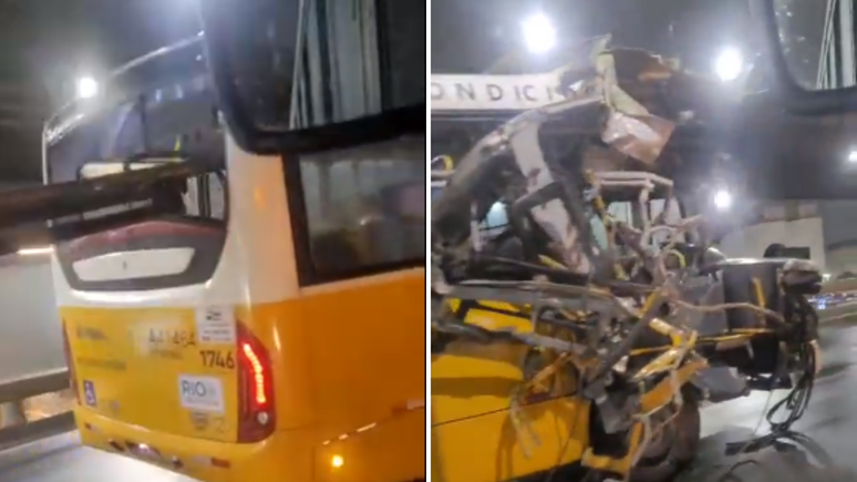No vídeo, é possível ver um pedaço de ferro atravessado no vidro da parte traseira, além da parte da frente e um pouco da lateral destruídas e um motorista guiando. De acordo com a Rio Ônibus, sindicato das empresas de ônibus da cidade do Rio de Janeiro, o veículo sofreu uma colisão e estava a caminho da garagem.