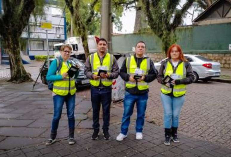 Estão identificados com coletes e têm credenciais próprias com nome, sobrenome e RG. A confirmação pode ser feira via EPTC (118) e também pelos contatos do consórcio contratado: (51) 99241-7302 e (11) 3097-8112.