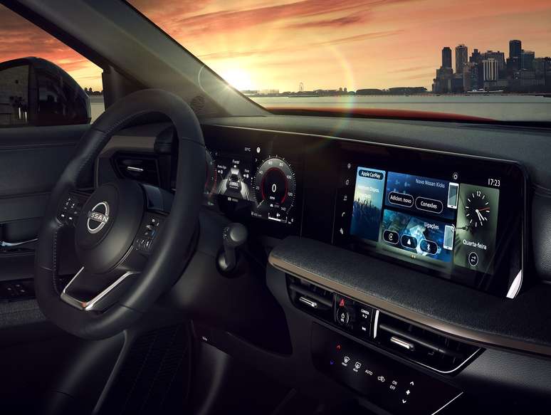 A conectividade é um dos grandes diferenciais desta nova versão do novo Nissan Kicks. A central multimídia do veículo foi pensada para ser sem fio e sem limites: conjunto de telas de 24,6” polegadas com entretenimento avançado.