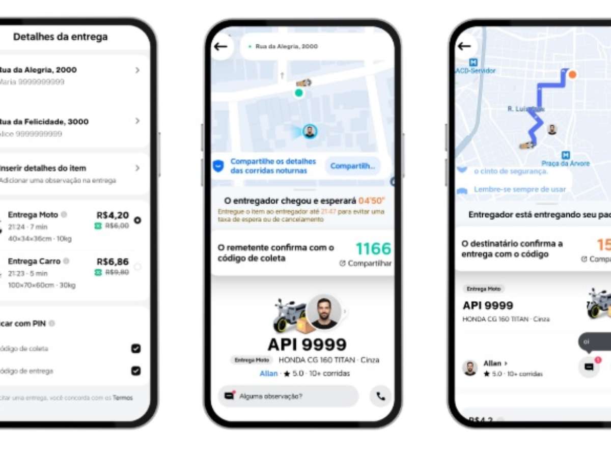 Com essa atualização, o entregador precisa inserir o código gerado automaticamente pela 99 antes de iniciar a viagem. Esse código fica disponível no app para quem solicitou o serviço e deve ser compartilhado pessoalmente com o motorista ou motociclista parceiro.