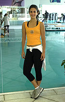 peça básica, Bruna escolheu uma calça tipo legging que vai até a barriga da