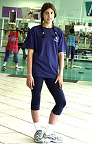 A combinação a deixa completamente à vontade e é mais uma sugestão para quem ainda está "afinando" a silhueta (o top revelador pode ficar para depois...). Veja como Carla resolveu bem o problema dos cabelos de comprimento médio: fez duas trancinhas, que lhe dão um ar de menina e não atrapalham durante os exercícios.