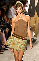 Esta sua criação tem tudo para ser uma ótima sugestão para uma festa de Natal - seu amigo secreto vai adorar!: a mini saia estampada e ligeiramente rodada é realçada pelo cinto duplo caído sobre os quadris e pelo top frente única de alças finas e leve drapeado.