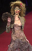 Três casacos geométricos criados em 1985 foram o ponto de partida para Lino Villaventura elaborar a coleção do inverno de 2003. "Posso me dar ao luxo de fazer isso", afirmou. "Mas não refiz as peças. Elas foram apenas o ponto de partida para a inspiração". » Veja as fotos do desfile de Lino Villaventura » Assista ao vídeo do desfile Baseando-se na idéia de que é possível superar o tempo e o espaço, o estilista propõe um jogo onde um labirinto de espelhos – presente no cenário – gera infinitas proporções e sobreposições. "A maneira que esse trabalho se propõe na passarela é visionária", definiu. Saias leves, coloridas e assimétricas nas mulheres, que surgiram na passarela também de leggings, casacos e boleros. Homens fluorescentes. Muitos furos nas roupas femininas. Em relação às cores, Lino Villaventura não teve medo de misturar. "Fiz uma mesclagem", explicou. A inspiração para as cores veio das pedras preciosas – rubi, ametista, topázio, turmalina, esmeralda – e dos quartzos – rosa, azul, amarelo e cristal. Mas é o preto do ônix que pontua a coleção. Um detalhe curioso é que 70% da coleção é feita a mão, construída a partir da montagem de pequenos módulos de tafetá, cetim, seda com cristais Swarovski, tule, malhas e jeans. Depois de feitos, os módulos foram costurados à mão. O resultado cria um clima de farrapo-chique e artesanal. "Foi cansativo e exigiu mais de mim, mas valeu a pena", disse. Nos pés dos modelos, sandálias masculinas e femininas feitas em resina, desenhadas pelo próprio Lino Villaventura e confeccionadas pelo designer cearense Césio Jr. Bonitas e exóticas, as sandálias chamaram ainda mais a atenção quando uma das modelos entrou com uma pendurada no tornozelo, sem perder a pose. As bolsas exibidas na passarela fazem parte da segunda coleção do estilista, em parceria com a Arrivare. A teatralidade típica dos desfiles de Lino esteve presente no de hoje também. Especialmente através das mulheres, que paravam em frente aos fotógrafos e faziam gestos, caras e bocas. Os cabelos "armados", assinados por Viktor I., e a maquiagem de Henrique Mello, com pinturas feitas no rosto dos modelos, como se fossem bordados, completou o espetáculo. Um espetáculo colorido e criativo, com o talento de Villaventura refletido no espelho.