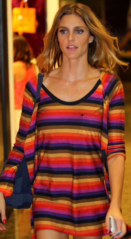 Fernanda Lima passeou por um shopping na Barra da Tijuca, no Rio de Janeiro, usando um vestido de malha de mangas longas, de estampa listrada.