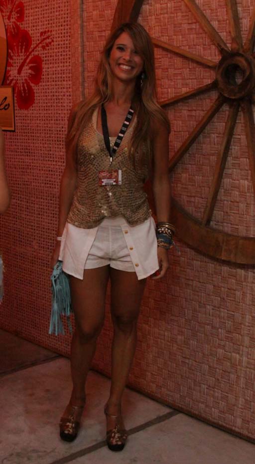 A atriz Danielle Winits também deu um jeito de personalizar seu abadá com decote a alguns apliques. O look foi complementado por um coletinho e shorts, ambos com muito brilho.