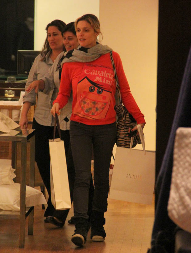 A apresentadora Fernanda Lima foi às compras em um shopping carioca, na tarde de segunda-feira (22), usando moletom estampado, cachecol, jeans skinny com tênis de cano alto e bolsa com animal print.