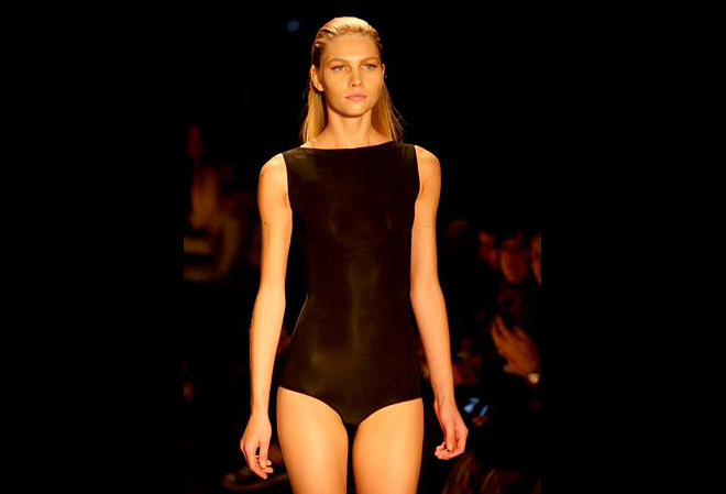 O brilho discreto do maiô inteiriço e fechado da estilista Adriana Degreas é bem-vindo em produções noturnas.
