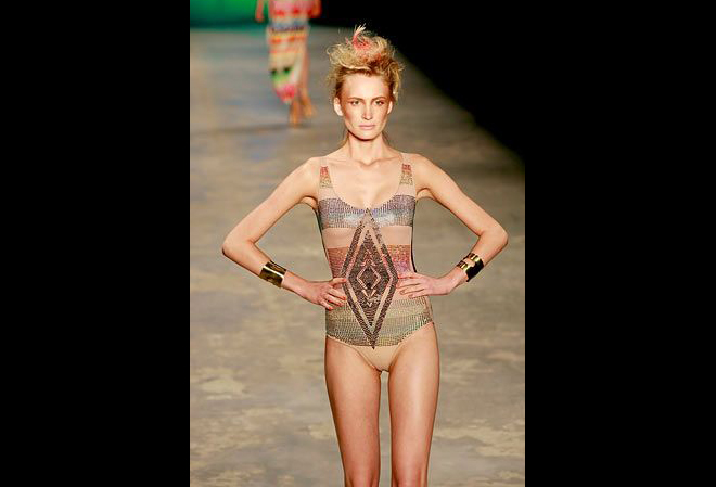 Paetês decoram maiô da Triya no modelo que pode sair da praia para montar looks urbanos.