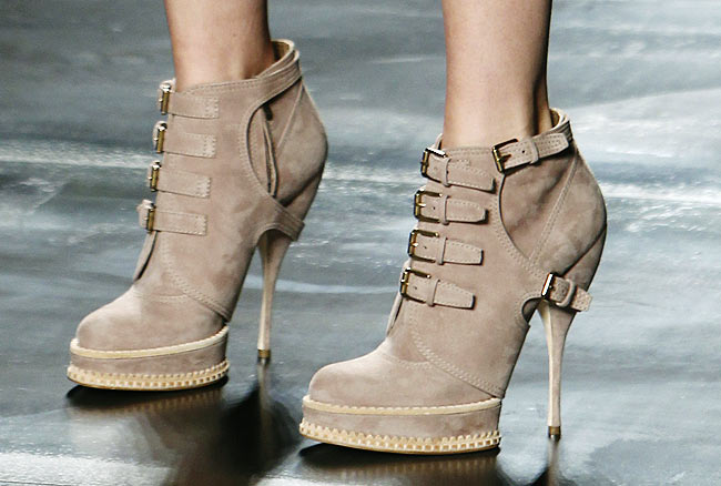 Botas curtas em tom escuro podem cortar a silhueta. Não é o caso desse look desfilado por Christian Dior para o inverno 2010/2011. Os tons claros só valorizam e alongam quem usa, o que é ainda mais evidenciado pelo salto alto.