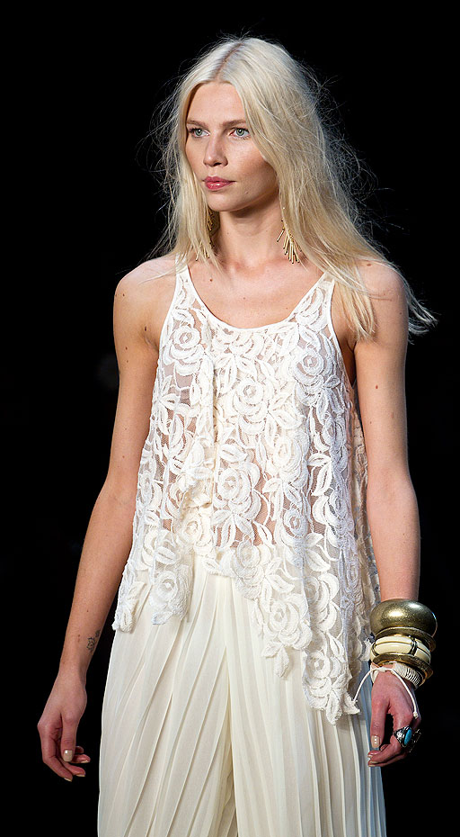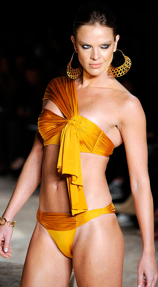 A top brasileira Raica Oliveira também já emprestou sua beleza à SPFW. Na foto, ela mostra suas curvas no desfile do Monange Dream Fashion Tour 2011.