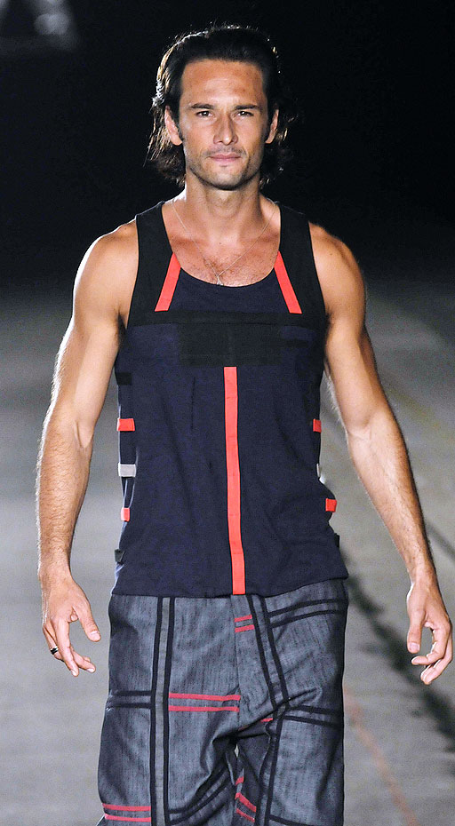 Além de brilhar na TV e no cinema nacional e internacional, o ator Rodrigo Santoro também já fez suas aparições no SPFW e também nas semanas de moda carioca. Na foto, ele desfila pela grife Ausländer na semana de moda do Rio de 2010.