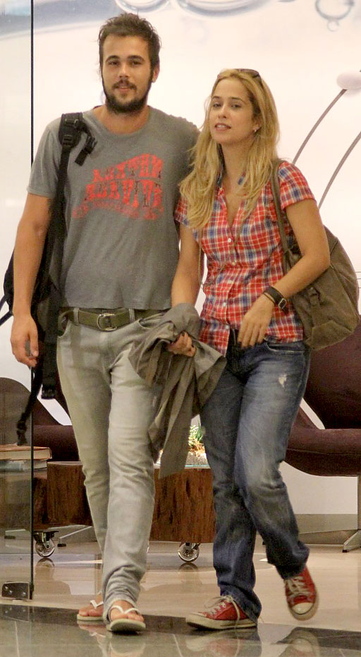 A atriz Paloma Duarte passeou com o namorado, o ator Bruno Ferrari, usando um visual básico, composto por calça jeans larguinha, camisa xadrez e tênis.