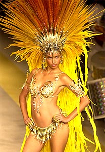 » Veja as fotosO estilista Tufi Duek, da grife Forum, levou para a passarela uma coleção verão 2003 inspirada na sensualidade e glamour da mulher carnavalesca. A modelo Adriana Lima abriu o desfile com um vestido de cetim de seda plissado, ao som da bateria da escola de samba Viradouro.