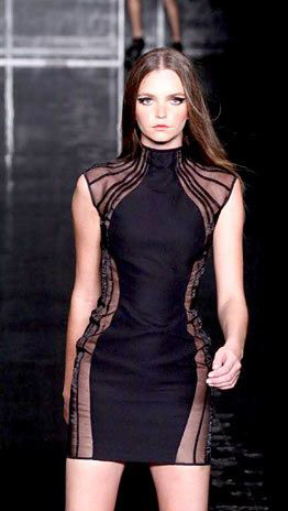 O vestido da carioca Filhas de Gaia está no limite, mas as transparências em linhas onduladas são boa opção para marcar o corpo. E o segredo aí, para não parecer vulgar, é que a peça seja forrada de tecido cor-de-pele, trazendo a falsa impressão de que o corpo esteja à mostra.