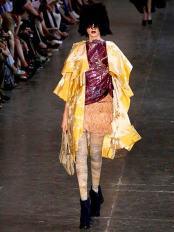Aqui está um bom exemplo de excesso de passarela e nada de vida real, a não ser que as peças sejam usadas separadamente, como a blusa de paetê, que ficaria ótima com uma peça básica.