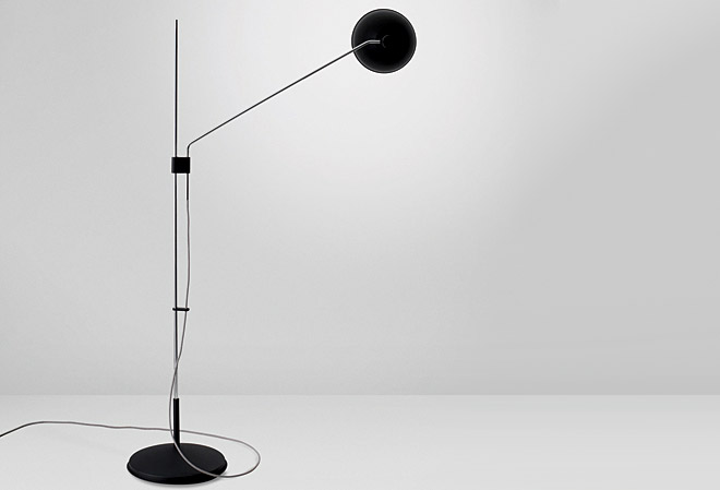O sistema de regulagem de altura da Luminária Bauhaus utiliza apenas o peso de sua cúpula para fazer o travamento na posição desejada. O produto também possibilita a orientação do facho de luz para leitura, parede ou teto.