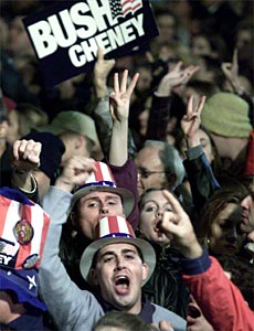 08 de novembro de 2000 - Partidários de George W. Bush se manifestam durante as eleições dos EUA