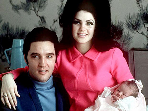 Ao lado da mulher, Priscilla, e da filha, Lisa Marie, em fevereiro de 1968