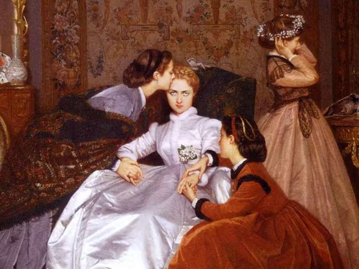 Você deve ter visto esta pintura circulando no TikTok. Talvez você até tenha também feito um vídeo sobre ela. Uma jovem com um vestido de noiva vitoriano olha para o espectador com desdém nos olhos.