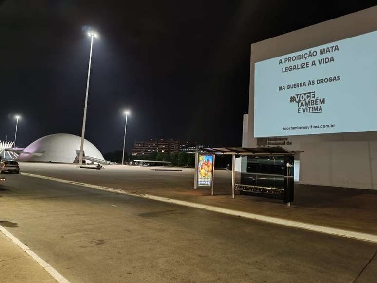 Na noite desta quinta-feira (19), manifestantes projetaram uma mensagem de uma campanha contra a política de guerra as drogas, em Brasília. A mensagem, "A proibição mata, legalize a vida na guerra às drogas", foi projetada sobre o letreiro da Biblioteca Nacional de Brasília, próximo à Esplanada dos Ministérios e ao Congresso Nacional.