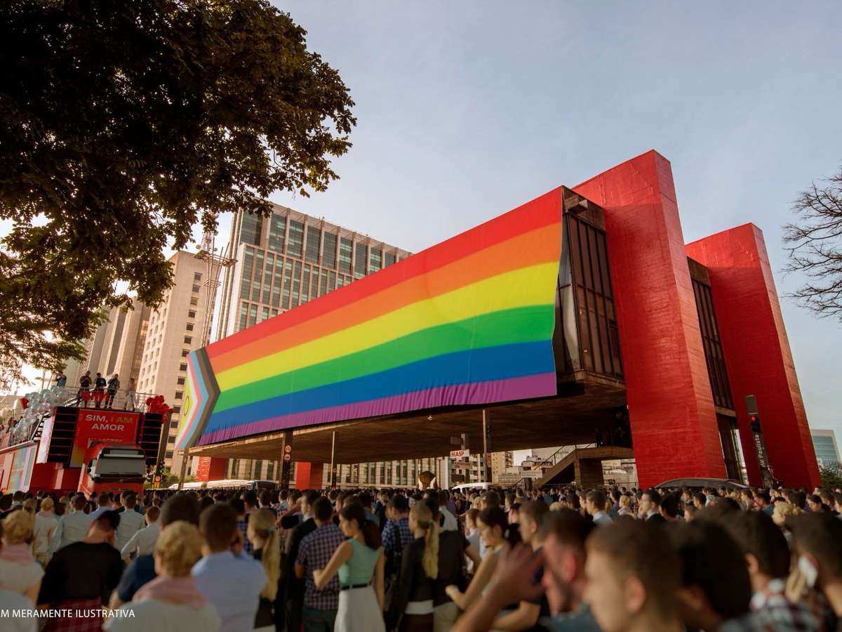 Uma bandeira do arco-íris de dimensões gigantescas será hasteada na fachada do Museu de Arte de São Paulo (Masp) em comemoração a diversidade. A ação inédita ficará disponível durante o domingo, dia 2, quando ocorrerá a 28ª Parada do Orgulho LGBT+ de São Paulo.