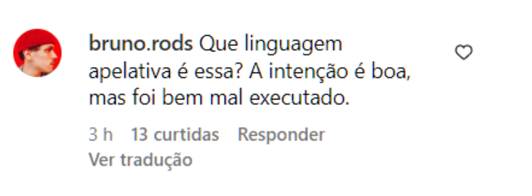 "Pra que salientar o que mais machuca?", comenta seguidor em postagem no Instagram que deveria ser de 'conscientização'