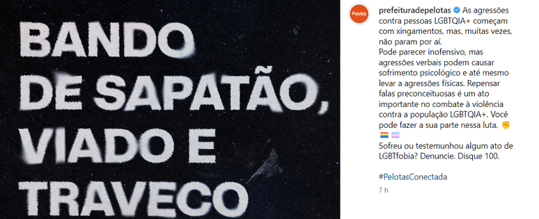 Em uma data escolhida para homenagear a luta da população LGBTQIA+ contra a LGBTfobia, a Prefeitura de Pelotas, no Rio Grande do Sul, cometeu uma gafe em seu Instagram ao publicar uma postagem de 'conscientização' ao Dia Internacional de Luta Contra a Homofobia, Transfobia e Bifobia.