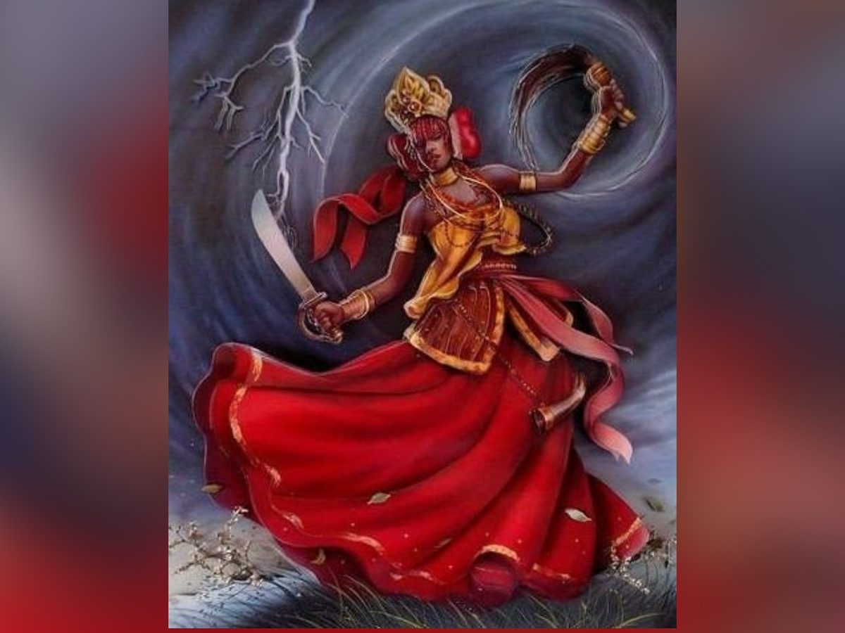 A divindade representada era Iansã, orixá associada aos ventos e às tempestades. Ela é comumente retratada como uma figura feminina vestida de vermelho, empunhando uma espada e um tipo de chicote chamado eruexim.